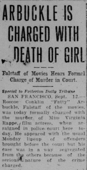 In celebrity crime news, movie star Roscoe “Fatty” Arbuckle was charged with the rape and manslaughter of actress Virginia Rappe. He was ultimately acquitted.