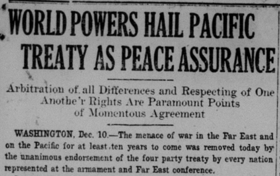 In an effort to prevent another World War, several nations signed a treaty to limit construction of warships. This became known as the Four-Power Treaty. Unfortunately, their efforts did not prevent another World War.