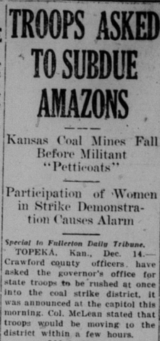 In Kansas, women took active part in the coal miners’ strike. They were called Amazons and Militant Petticoats. With the aid of federal agents and local militia, some were arrested, and some even deported.