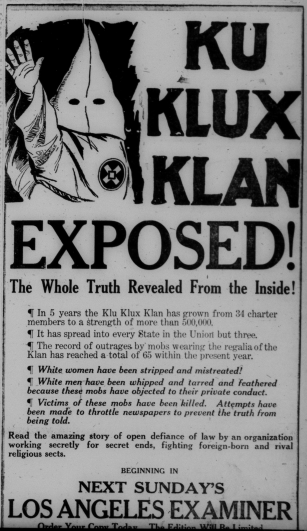 In the early 1920s, the Ku Klux Klan saw a massive resurgence, with a peak membership of around 5-6 million, with many in states outside the south. The Klan achieved real social and political power. It would ultimately make its way to Anaheim and Fullerton. Stay tuned for more on this.