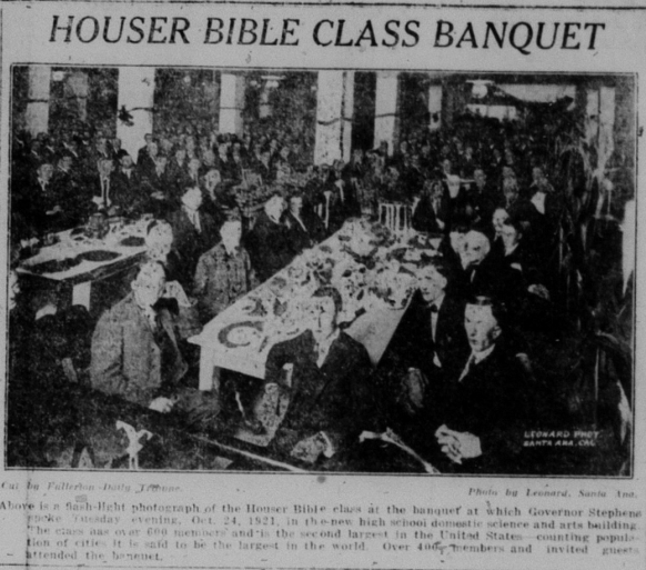 In 1921, a popular gathering place for men was the Houser Bible class, which brought in hundreds of members.