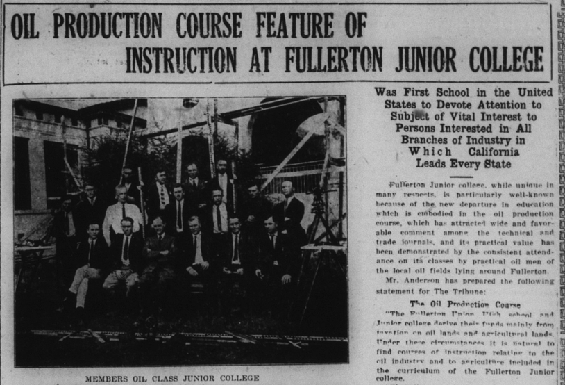 Fullerton College began to offer an oil production course.