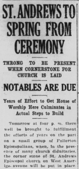 In education news, plans were being made to build a new grammar school on the south side of Fullerton. Maple School would open in 1924.