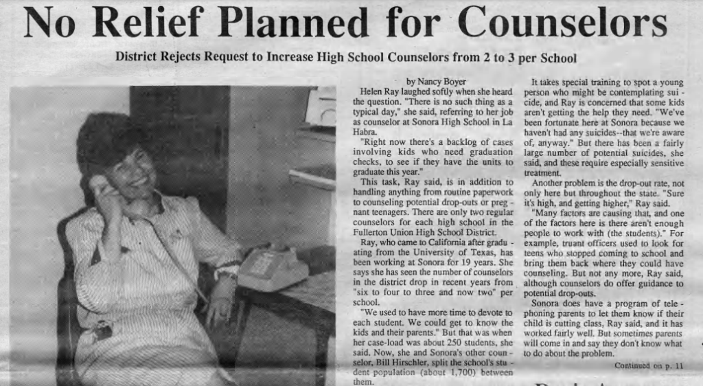 Meanwhile, the number of school counselors had been cut.