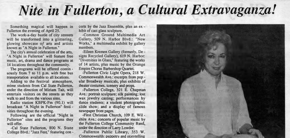 A major annual cultural event was A Night in Fullerton, which got started back in the 1960s.