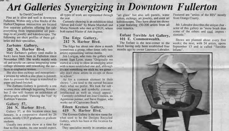 Unfortunately, one of those galleries, Common Ground, closed. Having co-owned an art gallery in Downtown Fullerton myself, I know how difficult it can be to keep it financially sustainable.