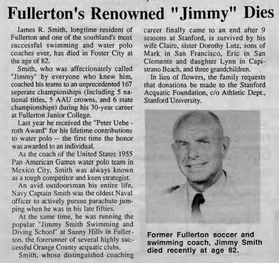 Popular local swimming and water polo coach Jimmy Smith died.