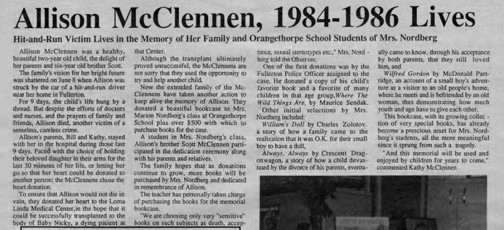 A toddler named Allison McClennen was tragically killed after being struck by a car.