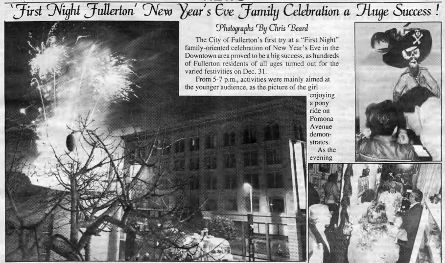 Cultural events included the citywide arts event “A Night in Fullerton” and the New Years celebration “First Night Fullerton.”