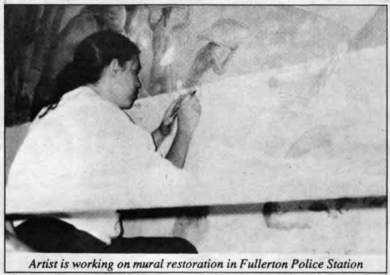 The City had contracted with an art conservation company to restore the WPA-era mural “The History of California” in the “mural” room of the Fullerton Police Station, which was originally City Hall.