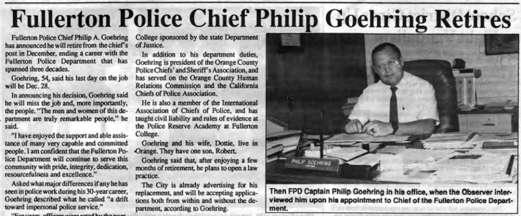Fullerton Police Chief Philip Goehring retired at age 54. Must be nice.