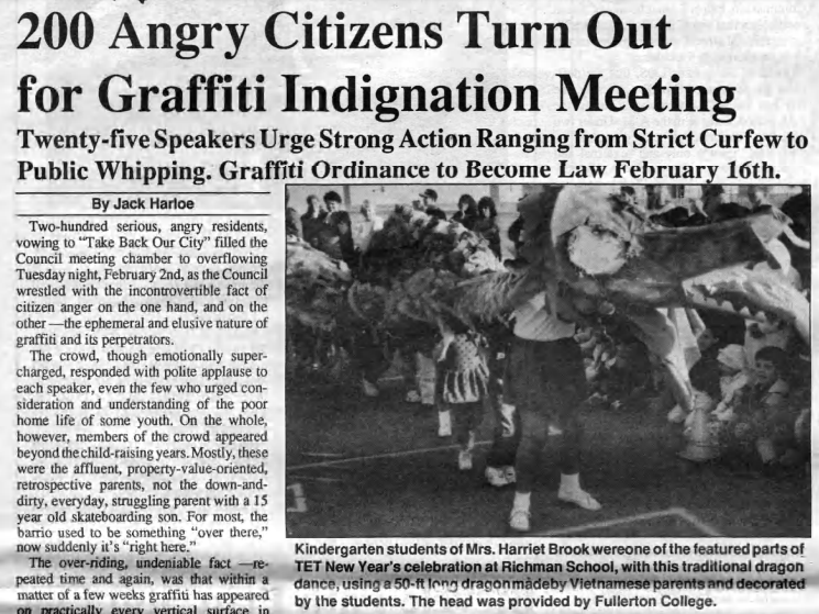 The Fullerton Observer newspaper was formed in 1978 by Ralph and Natalie Kennedy and friends to provide a more progressive counterbalance to the more conservative Fullerton News-Tribune and Orange County Register. The Fullerton Public Library has digital archives of the Observer stretching back to 1979. I am in the process of reading over each year and creating a mini-archive. Here are some top news stories from 1993.