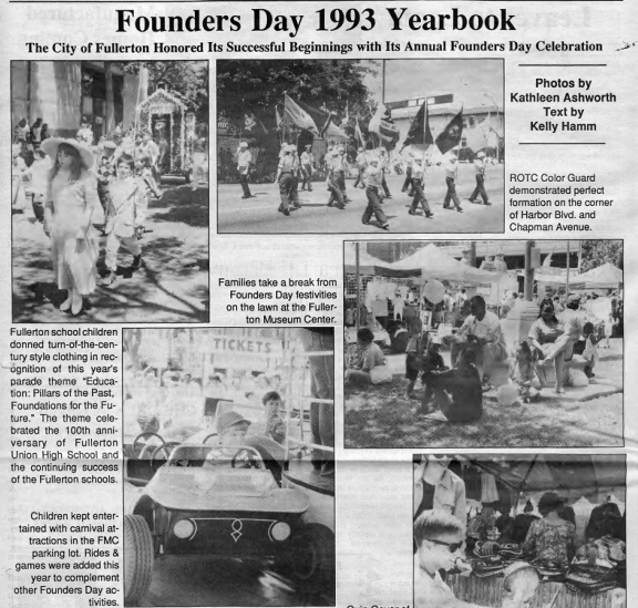 Community and cultural events included the First Night (New Years) Celebration, the Downtown Market, A Night in Fullerton, and the annual Founder’s Day Parade.
