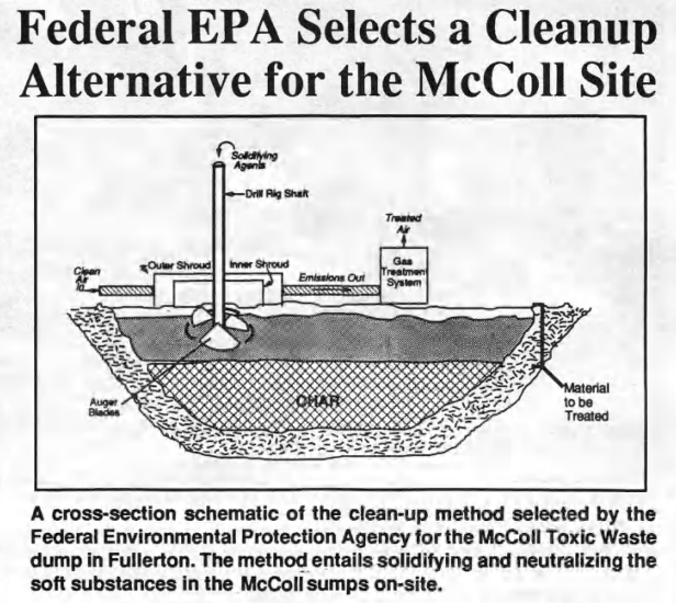 In the ongoing saga of the McColl toxic waste dump in northwest Fullerton, the Environmental Protection Agency (EPA) finally, after years of study and delays, chose a plan to deal with the waste.