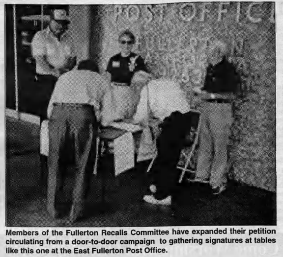 In 1993, Fullerton was represented on City Council by Mayor Molly McClanahan (a moderate Democrat), and councilmembers Julie Sa, Don Bankhead, Chris Norby, and “Buck” Catlin (all Republicans). Although, technically, city council is a non-partisan office.