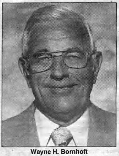 Wayne H. Bomhoft, retired chief of the Fullerton Police Department and former Mayor of the City of Fullerton, died of cancer at age 76. In 1957, Bomhoft was hired as chief of the Fullerton Police Department, replacing Ernest Gamer. Following his retirement from the police department in 1977, he won a seat on the Fullerton City Council in 1978, and served as mayor in 1980 and 1981.