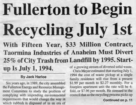 The Fullerton Observer newspaper was formed in 1978 by Ralph and Natalie Kennedy and friends to provide a more progressive counterbalance to the more conservative Fullerton News-Tribune and Orange County Register. The Fullerton Public Library has digital archives of the Observer stretching back to 1979. I am in the process of reading over each year and creating a mini-archive. Here are some top news stories from 1994.