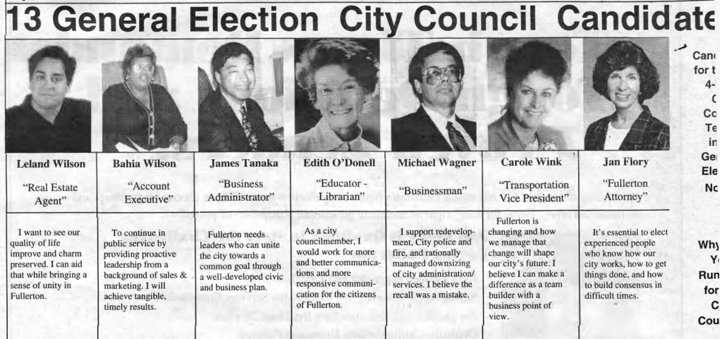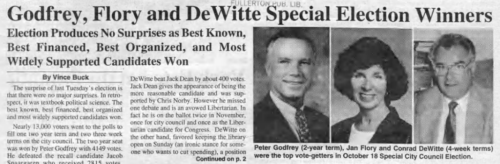 The liberal-leaning Fullerton Observer came out clearly against the recall election with numerous editorials and a series of positive profiles of the three candidates facing recall, as well as officially endorsing candidates.