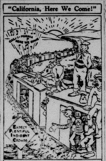 The cartoon below makes the argument that Sinclair’s programs to assist the poor and unemployed will make California a magnet for homeless and desperate people, with a sign parodying EPIC which reads: Expect Plentiful Indigent Crowds. Sound familiar? This sounds like the way Fox News talks about California today.