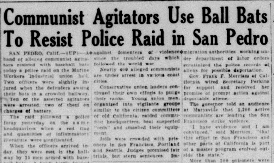 “Warning to citrus growers that they might expect communistic activities in this district as soon as the valencia season opens and methods of combating the agitation was given by H.O. Easton, packinghouse manager, at the regular meeting of the chamber of commerce here yesterday,” the Tribune reported.