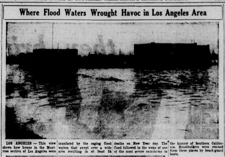 During the 1930s, southern California experienced a few natural disasters: the 1933 Long Beach earthquake, the 1938 flood, and another flood in 1934.