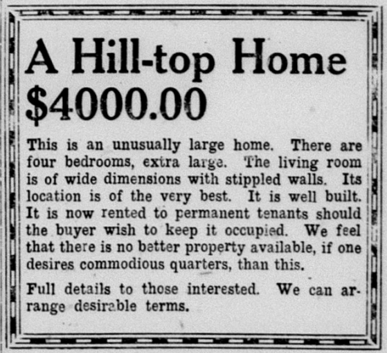 In 1934, a four-bedroom house atop a hill in Fullerton sold for $4000. In today’s dollars that would be about $94,000.