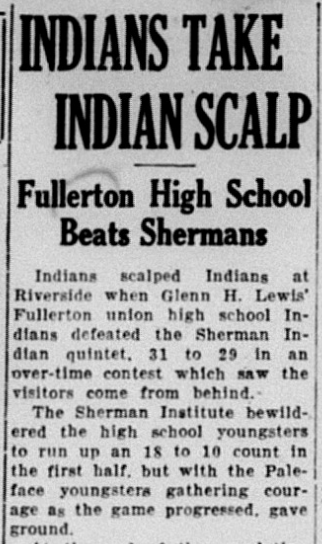 The Fullerton Union High School Indians sometimes played against the Sherman Indian High School (an actual Indian Boarding School) from Riverside, leading to sometimes offensive headlines.
