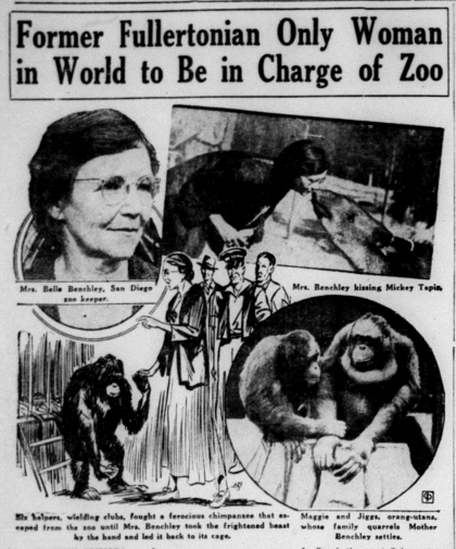 Former Fullertonian Belle Benchley got a shout-out for being a pioneering zookeeper in San Diego.