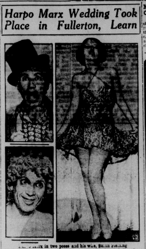 Harpo Marx of the Marx Brothers married Alva Fleming in Fullerton.