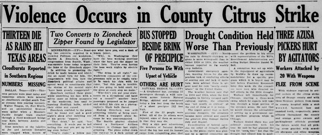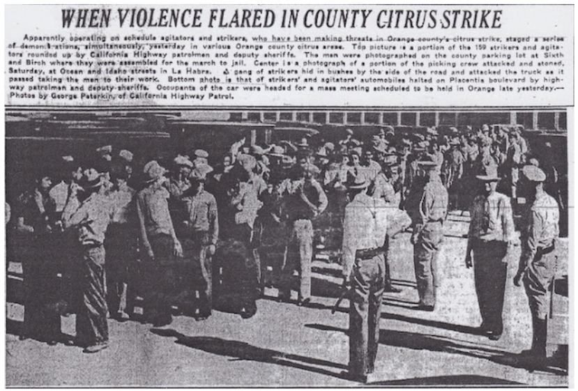 In his 1972 USC doctoral dissertation entitled The Orange County Citrus Stikes of 1935-1936: The Forgotten People in Revolt. Louis Reccow called it, “the largest and most violent citrus strike of the depression.”