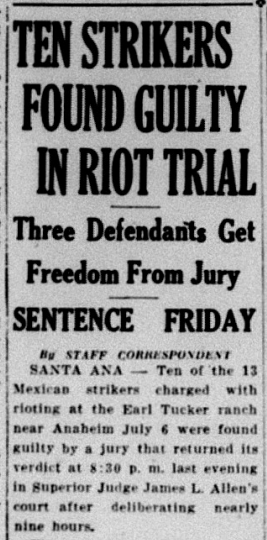 In La Habra, 40 or 50 families were evicted from their homes on ranch property for participating in the strike.