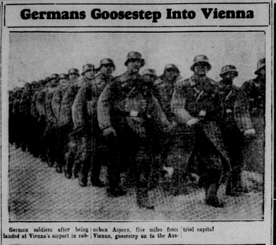 Fascist dictator Adolf Hitler had firmly consolidated power in Germany, and he was starting to embark on a campaign of military conquest that would soon engulf all of Europe. He began by invading and then annexing the neighboring country of Austria, and then part of Czechoslovakia.