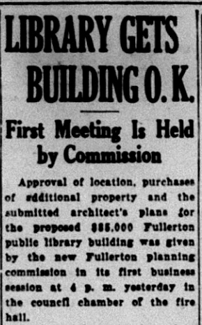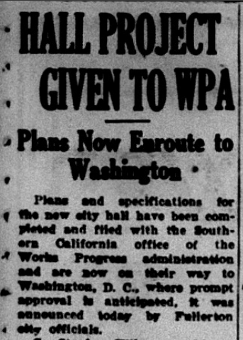 The Great Depression was still in full effect, and the federal Works Progress Administration continued to provide funding for public works projects in Fullerton (built by local unemployed men), including a new building at Fullerton College and a new library, to replace the old Carnegie Library (now the Fullerton Museum Center).