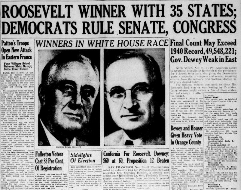 Despite some pushback, Franklin Delano Roosevelt was elected to an unprecedented fourth term.