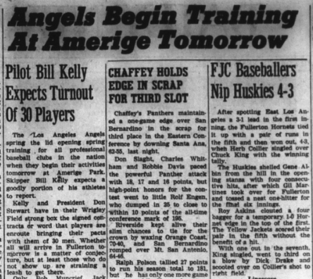 The Los Angeles Angels trained at Amerige Park in Fullerton.