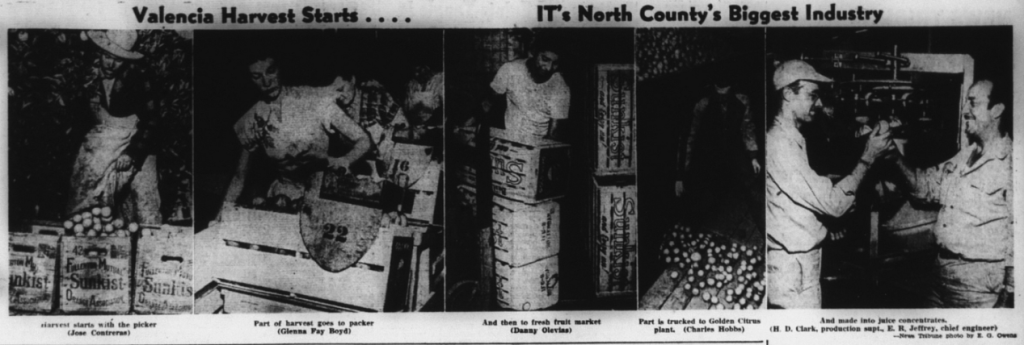 Although some orange groves were being plowed under for housing subdivisions, the citrus industry was still quite large in Fullerton and surrounding areas.