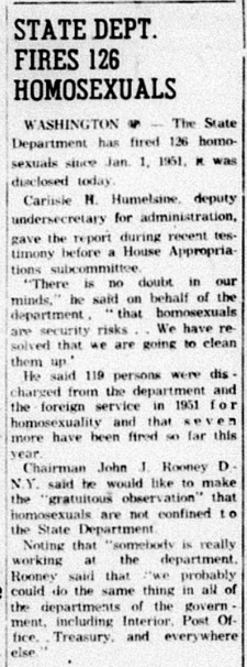 The Red Scare also weirdly associated homosexuality with communism, and many gay people were persecuted and lost their jobs.
