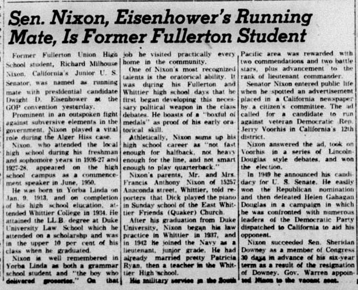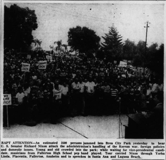 While running for Vice-President, Nixon held a number of campaign rallies in Orange County.