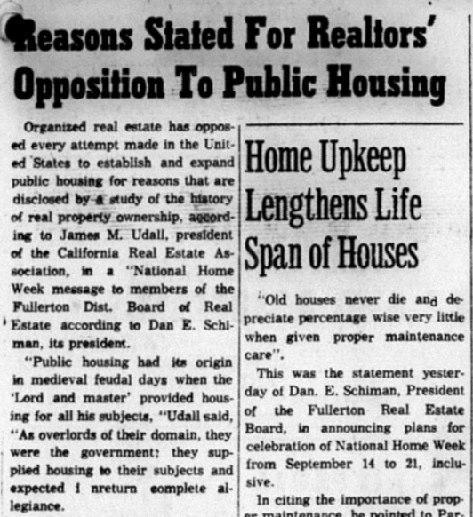 Local realtors lobbied hard against any kind of “public housing.”