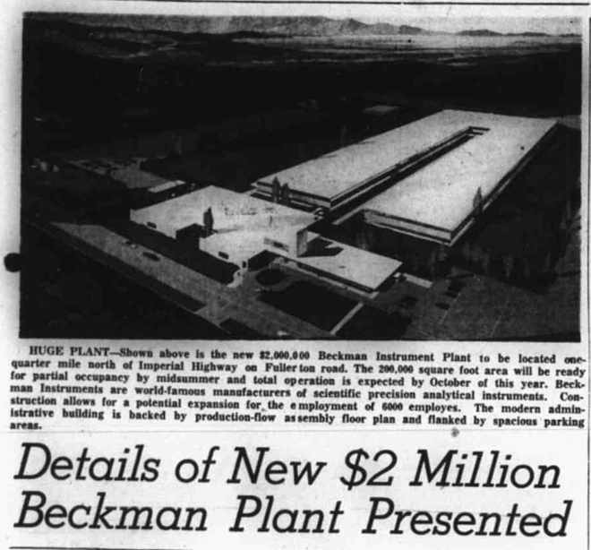 “The entire plant,” said Beckman, “has been planned to harmonize with the natural beauty of the area.” Much of the original orange grove will be maintained and additional landscaping will be in keeping with the established suburban atmosphere.”