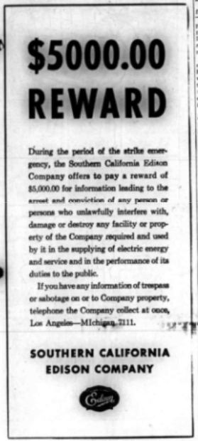 Edison responded by advertising a reward for information leading to the arrest of strikers who broke the law.