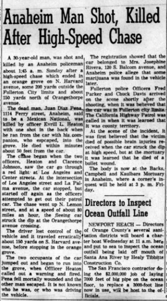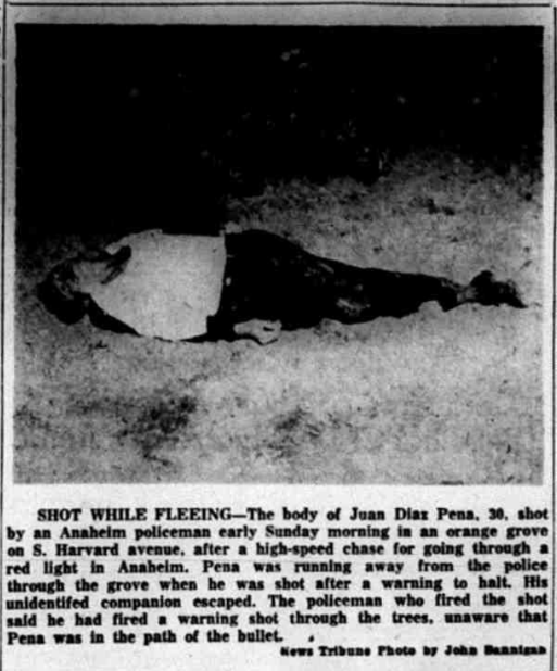 In 1953, police shot and killed a Mexican man named Juan Pena Diaz.