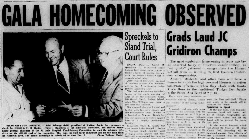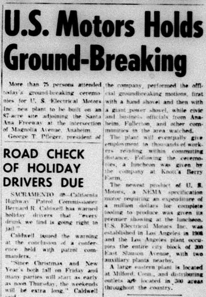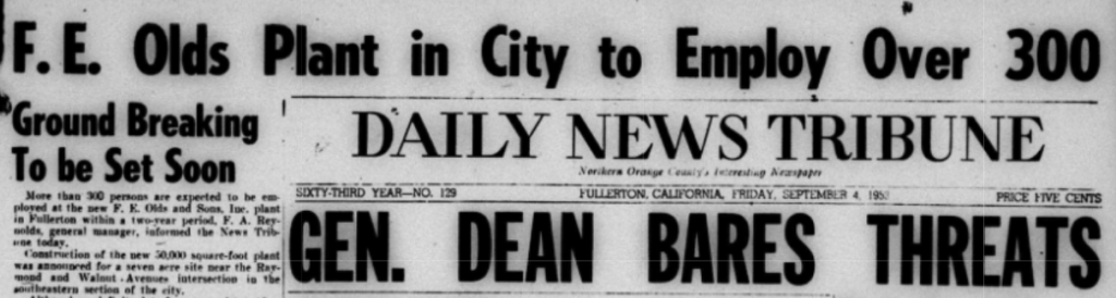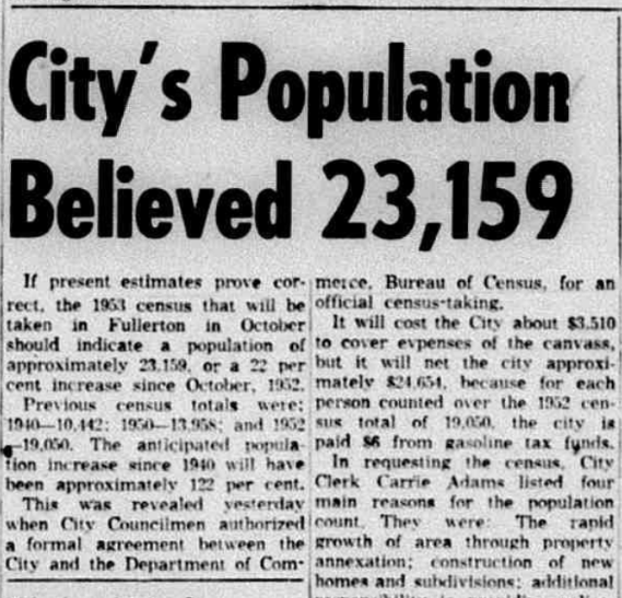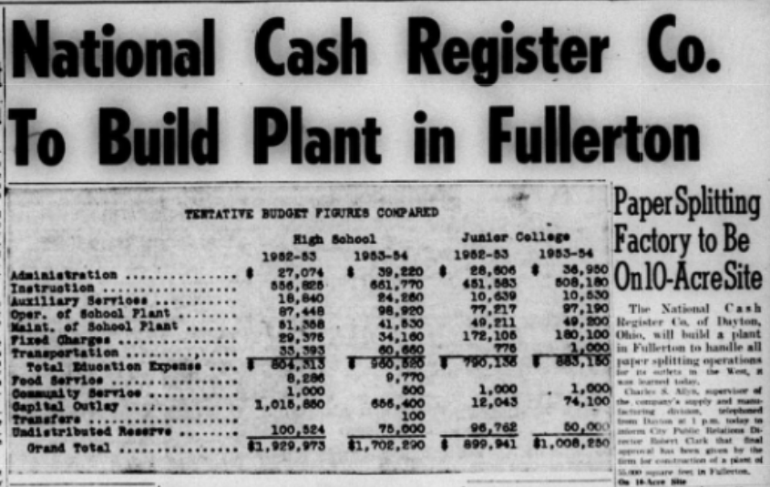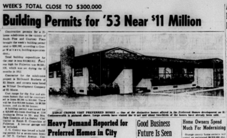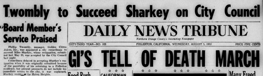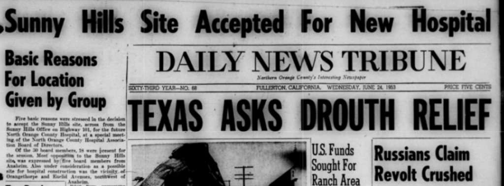 The Local History Room of the Fullerton Public Library has microfilm from the Fullerton Daily News-Tribune newspaper stretching back to 1893. I am in the process of reading over the microfilm, year by year, to get a sense of what was happening in the town over the years, and creating a mini archive. Below are some news stories from 1953.