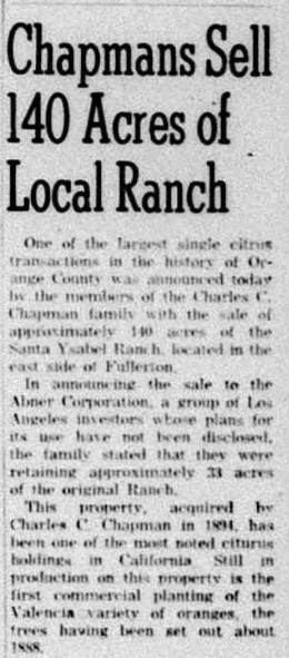 Many orange groves were replaced by new housing subdivisions, including the 140-acre Chapman Ranch.