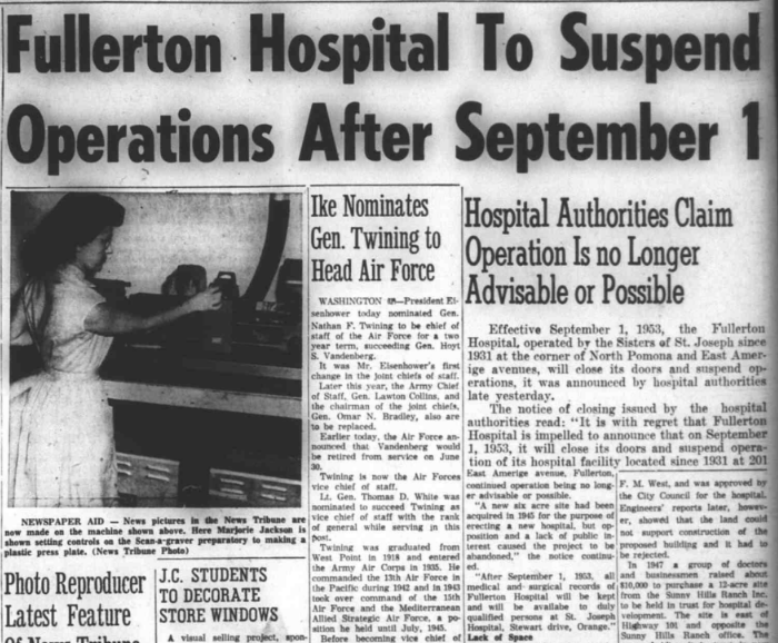 Fullerton’s growth meant that its old hospital was inadequate to meet the needs of a rapidly growing community.