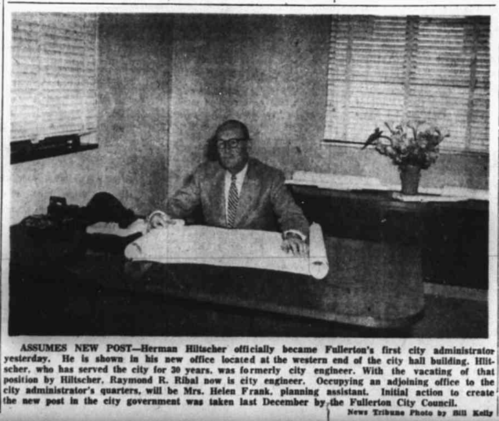 Fullerton’s first City Administrator was alleged former Klansman Herman Hiltscher.