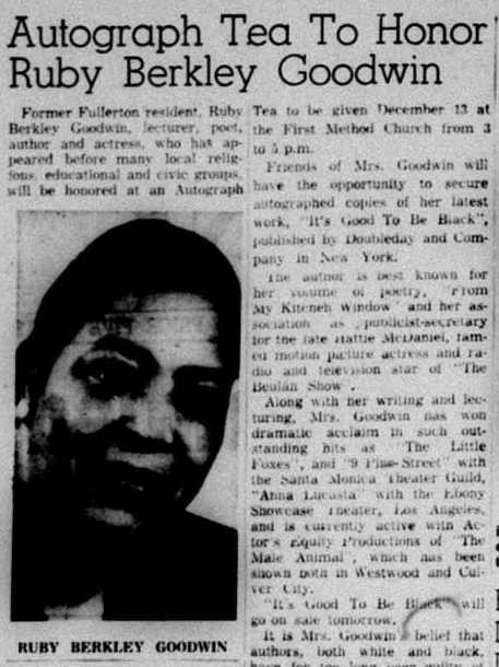 Local African American poet Ruby Berkeley Goodwin was honored.