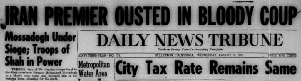 The prime minister of Iran, Mohammad Mossadegh, was ousted in a CIA-backed coup that would see the re-installation of the Shah who was much more friendly to western oil interests.