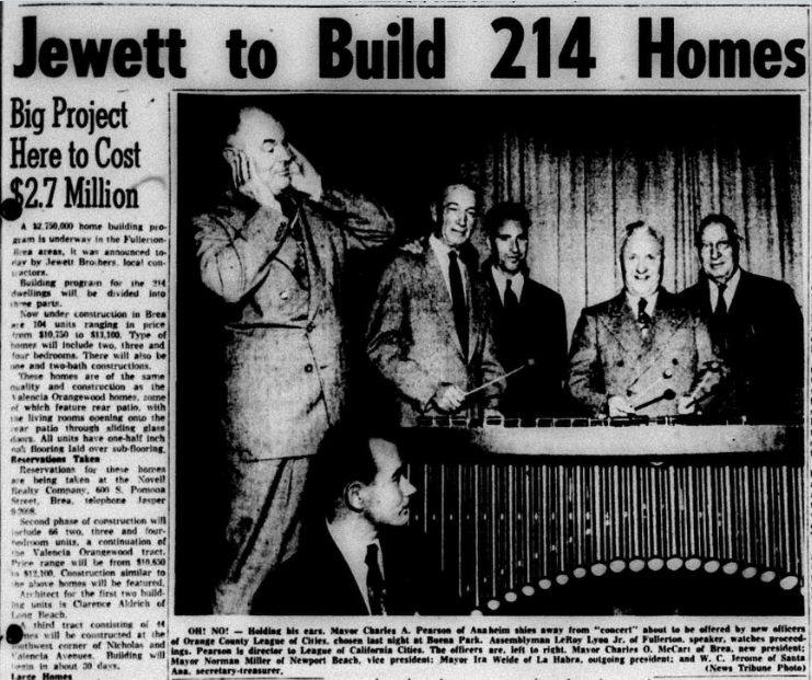 City Councilman Miles Sharkey (manager of the Sunny Hills Ranch company, who had been appointed, not elected) resigned because he no longer lived within the city limits of Fullerton and perhaps because he stood to gain financially by a proposed annexation of land north of Fullerton. The person who was appointed to replace him was Phillip Twombly.
