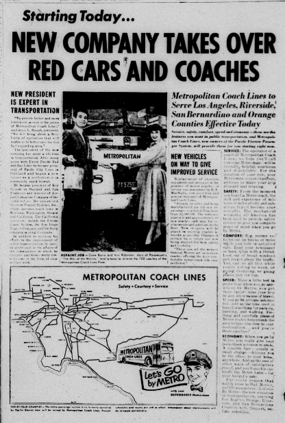 In the first half of the 20th century, Southern California had the largest inter-urban rail system in the world–the Pacific Electric “Red Cars.” In 1953, a new corporate conglomerate purchased the financially ailing Pacific Electric, and eventually dismantled this rail system.